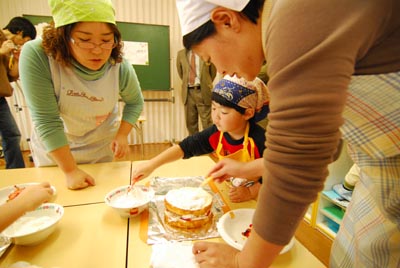 我が家では家族全員で押しかけ、楽しませてもらいました。 お遊戯の『お祭り忍者』 ・・・! なつかし~! 選曲は先生の趣味でしょうか。 台所でスリッパを両手で上げ下げしながら 「わっしょい わっしょい」って言ってたのは コレだったんですね。 先生、来年は一世風靡あたりでどうでしょう。 と思って検索したら、すでにやってる保育園が。 他人ですけど、ご覧ください!(youtube) 真ん中の緑色の少年。 「男 寿 郎」です。びっくり! ケタ違いの見事なキレ!腰の入りも違います! さすが寿郎!他の子とはひとあじ違います! お母さん、将来有望ですよ。 注:本当は「だんじゅろう」くんです。 別の動画にそうでていました。 さて、話しをわが子に戻して、 お遊戯の後にはケーキ作り。 真剣です。 特にまわりの人が。 本人は左官屋さん気分でしょうか。 その間、下の子は・・・ きらきらモールに夢中! そうこうしているうちにケーキもできて、 みんなでおいしくいただきました。 楽しい一日、最高のクリスマスプレゼントでした。 今日のひとこと 男寿郎くんのお遊戯もなかなかですけど、 うちの子も上手に踊れました。 渡部要一の米のホームページもご覧ください。 PR