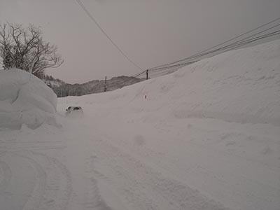 今年も、ここまで来ましたよ。 雪の壁で、どこを撮っているのか よくわかりませんね。 真ん中のちょっと上あたりに ぽちっと出ている棒、わかります? 拡大すると、これ↓です。 これ、スノーポールの頭です。 本来はこう↓なります。 でも、1本しか見えません。しかも上10㎝だけ。 この見えないポールを心の目で見ながら ぎりぎりを除雪するのが、小国の技です。 毎年こんなものなので「今世紀最高の寒波」と言われても、 どうもピンときません。毎年、最高の寒波です。 今日のひとこと 心の目どころか、本当の目でも見えません。 渡部要一の米のホームページもご覧ください。