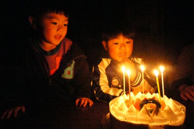 我が家でも着々と前夜祭の準備です。 上の子は、お菓子を作ります。 ハンドミキサーでメレンゲづくり。 「うわぁ~、コンクリートミキサーすごい!」 コンクリート・・・ ちなみにお菓子は夜まで待てずガブッ! そして待ちに待ったケーキ おきまりのハッピーバースデーを歌って、 ろうそくを消して、無事に一連の行事完了です。 大部分の日本人にとって、イブが本番。 ホントの本番には、すでに世の中はお正月モード。 それに抵抗したいというわけではありませんが、 ツリーはしばらく出しておこうかと思います。 今日のひとこと クリスマスだって、ハッピーバースデーが正しい。 渡部要一の米のホームページもご覧ください。