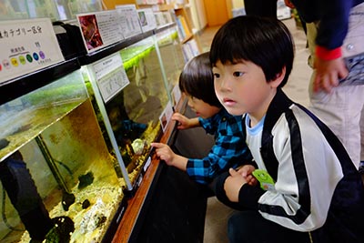 大きな施設ではないのですが、充実の展示にびっくり! 子どもたちもクギヅケ・・・ 初めて見るゲンゴロウにビックリ! 備え付けの虫眼鏡でじっくり観察です。 「うわぁ、離れると大きくなる!」 どうやら虫眼鏡の性質に驚いている様子。 そっちかい! でもまぁ、確かに離れると大きくなるのは不思議。 離れたら小さくなるはずですから。 新しい発見です。スバラシイ! ちなみに今回の特別展は「食べられる昆虫」 ザザムシとか、セミとか、カメムシとか・・・ カメムシ・・・ 食べるの? ・・・おぇ。 今日のひとこと お化け屋敷より背筋に来る内容に脱帽 渡部要一の米のホームページもご覧ください。