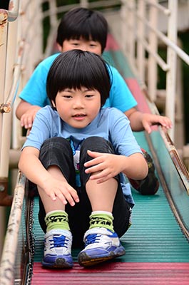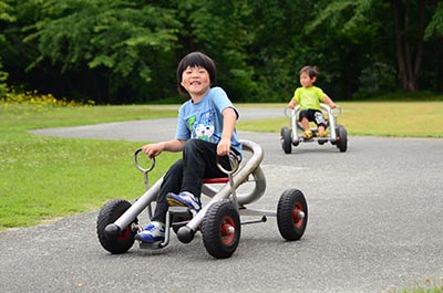 まずはローラーコースター。 体育座りで攻めます! 後ろからお兄ちゃんが、スリップストリームです。 これをひたすら繰り返します。 お尻が痛くなります。 「ぼく、もうだめ。骨、折れる!」 いやぁ、あれだけアップダウンを繰り返せば、 骨も折れることでしょう。ご苦労! で、次はペダルカー。 一人で実況中継しながら走っていました。 「おぉっと、前の車に追いついた! ぬける?ぬけるか?ぬいたぁー!」 年下の子供を追い越して、めっちゃ得意げです。 今日のひとこと 結局この2つだけで延々3時間! 渡部要一の米のホームページもご覧ください。