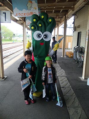 せっかくなので見学に行ってきました。 観光協会から借りた歓迎の旗をふってお出迎え。 「がんばれー!」 ・・・若干、趣旨が違いますが、まあ良いでしょう。 小国のゆるキャラワラビーマンも来ていました。 昔々、ワラビーマンが誕生したばかりの頃は、 「ピーマン嫌い!怖い!こないで!」 と絶叫&号泣されることもしばしばでしたが、 最近は子供たちに大人気なんです。 下の子も、ワラビーマンが大好き。 一緒に記念撮影できて、ご満悦でした。 今日のひとこと 観光協会の皆様&ワラビーマンの中の人、ご苦労様でした。 渡部要一の米のホームページもご覧ください。 |