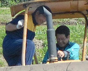 本日は町内最強と言われる「団子山」の田んぼです。 とにかく、ぬかります。 太いタイヤで圧力を分散します。 世界最強の湿地用タイヤです! 今回、ニューホーランドのデモ機を わざわざ秋田から持ってきてくれました。 昨年の水田車輪が壊れてしまい、 改良版を製作してもらったのですが 全然きかず作業が進まないため、 このたびのワイドタイヤ登場となりました。 心配そうに見ています。 それにしても、かなりぬかります。 メーカーHPの写真とは様子が違います。 牽引と言うか・・・ 曳航(えいこう)に近いです。 オトコのロマン・・・ ですな・・・ この様子は、動画でもご覧いただけます。 こちらからどうぞ。(ユーチューブ) 明日から田植えです。 今日のひとこと 世界最強タイヤvs町内最強田んぼ まさに泥仕合!!(うまいっ!) 渡部要一の米のホームページもご覧ください PR