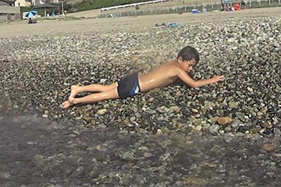 あっっっっっっつい! こんな日は、海ですかね。 で、「海に行く?」って聞いたら、30秒の沈黙の後に もうこの状態↓ですよ。 そのまま海に出発です。 上の子は、泳げるようになってました。 下の子は、浜に打ち上げられていました。 しばらくして、鳥をみつけました。 「あ、カモ!」 おしい!実におしい! あまり見ないもんね。 やっぱり、山の子でした。 今日のひとこと 上の子が「カモメでしょ!」っていうから、 「かもね!」って返したら、周りが一気に-10℃! 渡部要一の米のホームページもご覧ください。 PR