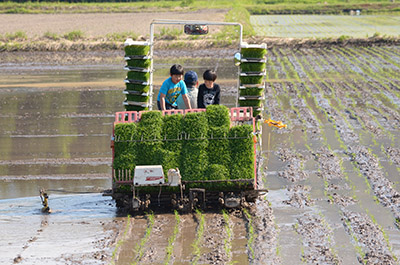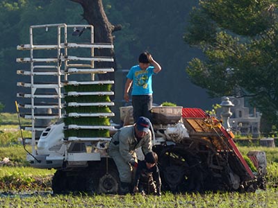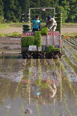 苗は無事に成長しました。 ただいま、田植え作業中。 子ども達も、念願の田植え機に同乗です。 苗の減り具合や肥料の落ち方を見たり、 苗の補充を手伝ったり、 田んぼに落ちたり・・・ いろいろしてました。 今日のひとこと この後、用水路で仮洗浄され、ブルーシートに くるまれて家まで運搬されました。 渡部要一の米のホームページもご覧ください。 PR