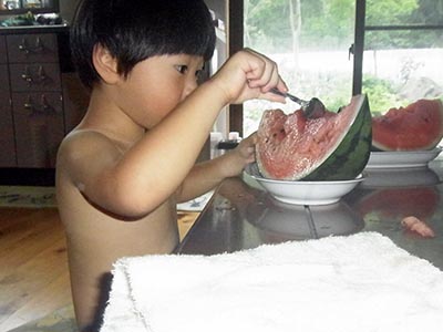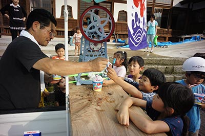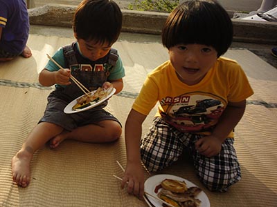 この2か月間、ちょいと過酷な業務に携わっておりまして、 身動きが取れませんでした。 そんなわけで、実に6週間ぶりの休日。 隣の寺で開催された子供会(という名の自家製ビアガーデン)に 家族みんなで参加してきました。 まずはヤマメのつかみ取り。 一瞬で捕まったので、もう一回放して、 捕まえなおしています。 要一はかき氷屋さん。 古道具屋で見つけた自慢の手回し氷削機! わざわざ「氷」の旗をAMAZONで買って、 「昭和レトロ」を演出しています。 でも、本人の風貌が何よりも昭和・・・ というのは、言わないお約束。 バーベキューもしました! 楽しい1日、ありがとうございました! 今日のひとこと 久しぶりの更新、サイトの使い方を忘れた・・・ 渡部要一の米のホームページもご覧ください。