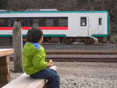上の子が「電車を見たいな~」というので、 すぐ近くの古口駅までお散歩。 小国では列車が見られないので、大喜びです。 その帰り道、「首、冷たい」と言うので くっついていたフードをかぶらせたら、 今後は「なんだか、うるさいよぉ・・・」 ・・・ええい、こうしてやる! 本人も満足そうです。 しかしこれ、 ちょっとE.T.っぽいです。 今日のひとこと 「E.T. オウチ、カエラナイ・・・」 本当に帰りたがらず、困りました。 渡部要一の米のホームページは鋭意修理中です。 申し訳ありませんが、もうしばらく偽リンクです。