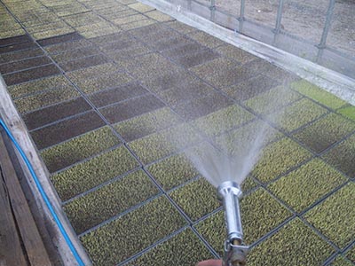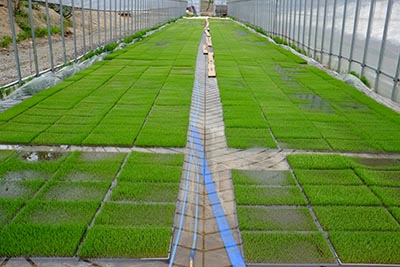苗がだいぶ育ってきたので、ハウスに水を張りました。