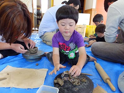 子供たちが通う保育園で、陶芸体験がありました。
