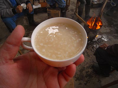 ちゃんと芽が出ました。 もともと東南アジア原産の植物だけに、 この気候には相当困惑していることとは思いますが、 とりあえず元気です。 今日のひとこと 芽、出たい。めでたい。 渡部要一の米のホームページもご覧ください。 4月も下旬に入ったというのに、 あんまりな大雪です。 めっちゃ寒い。 でも、種まきしてます。 あまりの寒さに、廃材を燃やして暖をとっています。 煙たい。 煙が目に沁みます。 10時には、共同で作業をしていた家から 甘酒の差し入れが。ありがたや。 もう2日で終わります。 今日のひとこと 寒い。 渡部要一の米のホームページもご覧ください。
