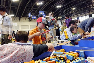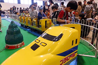 入場者全員にドクターイエローの中間車をプレゼント! 先頭車、持ってないのに・・・ 買わせようというタカラトミーの戦略が見え見えです。 さっそくドクターイエローのミニ電車に乗車。 20分待って、直径10メートルの楕円を1周。30秒。200円。 これ、楽しいのか?と思ったら、下の子大盛り上がり! ボタンを押すとドアが開く模型もありました。 青を押すと開いて、赤を押すと閉まる。 それだけ。でも大盛り上がり。 プラレール釣りなんていうのもありました。 短い棒の先に糸とフックがついていて、 プラレールにひっかけて吊り上げるというゲーム。 本日の最高記録は、1分間で19台だそうで。 まじっすか!?3秒に1台? カツオの一本釣り並ですよ。 「これ、面白いのか?」と疑問を感じることも多々ありましたが、 子供たちは大満足だったようです。そういうもんなのかねぇ。 今日のひとこと プラレールの人気って、すごいですね。 渡部要一の米のホームページもご覧ください。 PR