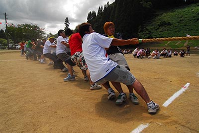 そう。東部地区大運動会です。 繰り返します。大運動会です。 総人口300名に対して、グランドに集まったのは なんとビックリ350名! そう、里帰りして参加する人もいるんです! 我が家は家族全員が出走。 一番下の子は2歳児部門のレースを総ナメ! (もっとも、2歳児部門は1人しかいませんが・・・) 要一はカボチャ運びリレーのアンカー。 子供たちも注目して・・・・ いません。 トイレタイムです。 地区対抗綱引きは本気モード全開! 年齢制限なしですが、若いチームが勝つとは限りません。 優勝チームは最高齢70代!60代女性もいます! そして終了後は、お約束の焼き肉! 一畳分の鉄板で100人分の焼き肉です。 田舎の運動会ならではの濃い一日。 これぞ叶水です。 今日のひとこと 次の日は村人全員筋肉痛で、ASIMOっぽくなります。 渡部要一の米のホームページもご覧ください。