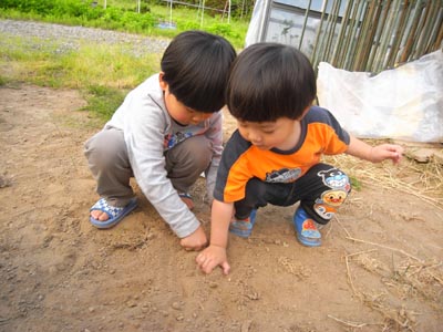 しかもポット苗のまま! ということで、取り急ぎ畝立てを。 通常ならクワで半日がかりの作業が、 「畝立てポチ」号で、ものの10分! いとも簡単に畝立て完了。 その間子供たちは・・・ やっぱりそれかい! 今日のひとこと いつでもどこでも工事現場! 渡部要一の米のホームページもごらん下さい。