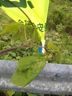 「交通安全の呼びかけ」をやってきました。 田舎道と思ってあなどるなかれ! この時期、県外ナンバー率80%! 山菜採りに来る方が多いんです。 しかも夜通し走ってくる高齢ドライバーもいて、 けっこう事故率も高いんです。 ついでにのぼり旗も点検。 ・・・!! やはり、今年もやられていました。 クズです。 タチの悪い酔っ払いなみにカラんでくる とんでもないヤツなんです。 昨年はコイツのせいで旗が破れてしまいましたが、 今年は早期発見&早期対処で被害なし。 良かった良かった。 今日のひとこと 飲んだら乗るな! 飲むならカラむな! 渡部要一の米のホームページもご覧ください。 19万キロ到達! 年間2万キロくらいのペースで乗っていたのですが、 昨年9月末に18万キロに達してからペースダウン。 右後ろのパワーウィンドウが開かないのと、 ちょっとタイヤがハの字に開いてるのと、 エンジンの端っこの辺りから異音がするのと、 やたらとブレーキが鳴くのを除けば健康です。 オイル交換しなきゃ。 今日のひとこと 老体にムチ打って、がんばってます。 渡部要一の米のホームページもご覧ください。 |