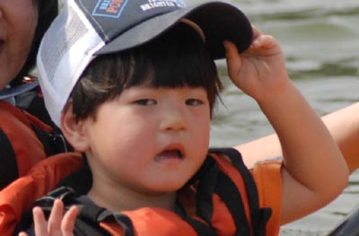 カヌー体験に行ってきました。 子供たち、「舟に乗るの!」と大興奮! ノリノリで乗船です。 でも漕ぎ出すと・・・ 顔がひきつってます。 初めての水上、怖かったみたい。 今日のひとこと 一丁前に漕いでると思ったら、 パドルにしがみついてるだけ・・・ 渡部要一の米のホームページもご覧ください。 PR