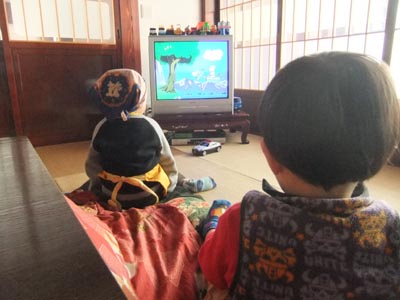 温湯消毒で使った水槽にヒーターを取り付けて、 先日まで冷やしていた種もみを温めます。 その温度は・・・ 30℃! 米はもともと東南アジアの熱帯の植物。 雨季を待って芽を出す性質があります。 そこで、ぬるま湯に浸けて人工的に雨季を再現し、 十分な温度と水がある環境になったと錯覚させて 芽を出させるわけです。 それを考えると、東北や北陸といった超豪雪地帯が 米どころというのは、なんだか奇妙ですね。 今日のひとこと 本日の積雪120センチ! 渡部要一の米のホームページもご覧ください。 倉庫管理部長の渡部チョコが 朝のミーティングにやってきました。 猫のぬいぐるみをおんぶしていた下の子が チョコを見つけて走ってきて、窓越しに出迎えます。 部長に何やら指示を出している様子。 よ~く聞いてみると・・・ 「コッコ、ッチ(チョコ、あっち)」 どうやら持ち場に戻るよう指示したようです。 部長が帰って、ミーティング終了。 今日のひとこと まもなく猫の手が必要な季節になります。 渡部要一の米のホームページもご覧ください。