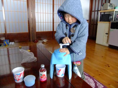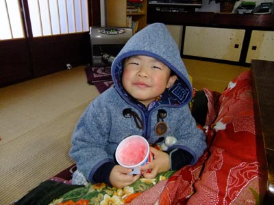 「カキ氷たべたい!」 などと良い始めまして・・・ 寒いからやめようと諭したのですが、 どうしてもあきらめきれない様子。 仕方ないので作ることにしました。 でも・・・ この格好、ヘンじゃないですか? 防寒コートを着てカキ氷って。 コタツに入って、震えながら食べてました。 満足したようです。 今日のひとこと コタツに入って冷たいみかんを食べる的な? 渡部要一の米のホームページもご覧ください。