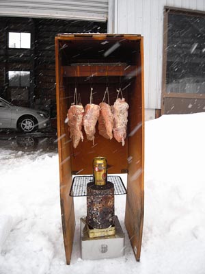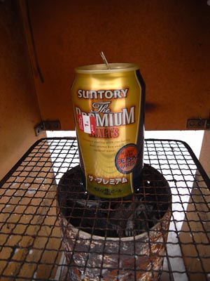 手作りスモーカーはコンパネ製。 「とりあえず作った」感バリバリ でも3年目を迎えてもまだまだ元気です。 熱源は墨です。 コレが一番安くて火力も安定しています。 温度は熱源の高さで調節。 雷おこしの缶+αが良いようです。 スモークチップ入れは プレミアムモルツ! いや、別に何でもいいんですけど、 口が小さいものの方が良いです。 口が大きいと、チップに火がついて 消えなくなってしまいます。 で、セット完了。 墨に火をつけて3時間放置すると完成。 ちなみに完成の写真はナシ。 撮る前に食ってしまった・・・ 今日のひとこと 寒かった。 渡部要一の米のホームページもご覧ください。