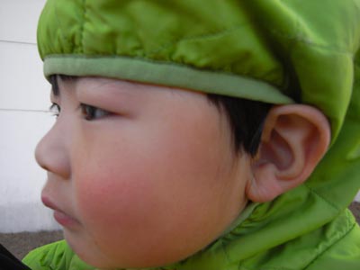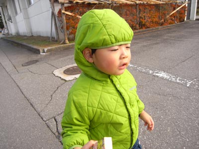 上の子が「電車を見たいな~」というので、 すぐ近くの古口駅までお散歩。 小国では列車が見られないので、大喜びです。 その帰り道、「首、冷たい」と言うので くっついていたフードをかぶらせたら、 今後は「なんだか、うるさいよぉ・・・」 ・・・ええい、こうしてやる! 本人も満足そうです。 しかしこれ、 ちょっとE.T.っぽいです。 今日のひとこと 「E.T. オウチ、カエラナイ・・・」 本当に帰りたがらず、困りました。 渡部要一の米のホームページは鋭意修理中です。 申し訳ありませんが、もうしばらく偽リンクです。