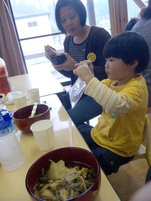 さっそく視力検査から挑戦! ランドルト環(「C」の形のヤツ)のすき間の向きを指せれば合格。 母「これはどこが開いてる?」 子「真ん中!」 母「・・・そうじゃなくて、丸い線のすき間はどこにある?」 子「ん~とねぇ、戸のすき間!」 確かに開いてたんですけどね。 ラチが明かないと思った母はエサ釣り作戦に! 母「当たったらジャンケングミあげるよ。」 子「(指差して)こっち!」 わかってんじゃないの! 次、聴力検査。 犬やネコ、鳥などの絵が描いてある紙を渡して、少し離れたところからささやき声で「○○はどれ」と聞いて、それを指差すことがでいればOK。 母「犬はどれ?」 子「あのねぇ、ワンワンってなくヤツ。」 別にあんたはささやかなくてもいい! それにしてもヤバイ。さっきのパターンです。 すかさずエサ釣り作戦。 母「当たったらおっとっとあげる。」 子「えっ!ほんと?」 はい、十分聞こえてます! よく考えたら、その前段のワンワンでもOKだったんですね。 上の子にあげたら、下の子にもあげなきゃいけません。 とんだ出費でした。 でもまぁ、視力聴力異常なしということで、良しとしましょう。 今日のひとこと ジャンケングミ 50円×2=100円 おっとっと 50円×2=100円 息子の健康 プライスレス 渡部要一の米のホームページもご覧ください。 今日は保育園の親子行事。 長沢保育園のお友達と一緒に芋煮会でした。 うちの子、芋煮に全然手をつけないので どうしたんだろうと思って見ていたら、 シメのうどんが入ったとたんにターボ! シメなのに3杯も頂いてしまいました。 ごちそうさまでした。 長沢保育園の皆さん、ありがとうございました! 今日のひとこと 確かに、うどんが好きだからね。 渡部要一の米のホームページもご覧ください。 車のメーターパネルです。 だからどうした! といわずよ~く見てください。 ・・・見えない? じゃ、拡大。 じゃじゃん! 本日18万キロ達成! 地球4週半です。 ちなみに、先々月車検をとったばかり。 20万キロにロックオン! 普段の手入れは4Lで1,000円の激安オイルと 1個315円の激安オイルフィルターを定期交換。 それだけで、エンジン系統の故障は皆無。 最近の車って、丈夫だね。 ブレーキは3回も修理したけど・・・ 今日のひとこと ブレーキが壊れやすいって、致命的じゃない? エンジンが壊れるよりずっと危ないよ。 渡部要一の米のホームページもご覧ください。 |