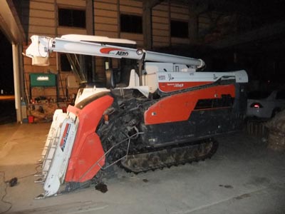 ・・・ですが、30分でコンバインが故障。 一瞬にして作業中断です。ヲイッ! 帰ってきたコンバイン。 バッテリーもヨレヨレです。 今日のひとこと 要一も充電中。 渡部要一の米のホームページもご覧ください。