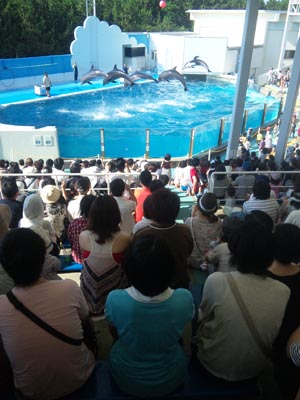 新潟市のマリンピア日本海に行ってきました。 めったに体験できない暑さと人ごみ! 9年前の8/31、夏休みの最後の土曜日、 インベーダーゲームのようにランダムに 走り回る子どもを必死でかわしながら歩いた 某ネズミーランドのことを思い出しながら、 人の流れに身をゆだねて魚介類等の見物です。 「うわ~、水の中、走ってる!」 走っちゃいないと思うのだが・・・ タダゴトじゃない入りこみです。 昔、小国でバブルガムブラザーズの コンサートをやったときより入ってます。 これが1日4回転! 恐るべし、イルカ・・・ 会場の子供たちは大喜び。 1歳児でさえ拍手! わかっているのかは 不明でありますが、 とりあえず「おぉ~」と ハッスルしてました。 この写真を撮るのって、 結構な技じゃないですか? 携帯はボタンを押してから ピントを合わせるので、 シャッターが切れるのはボタンを押して1秒後。 つまり水中にいるうちにボタンを押してるんです。 ふふふ、誰も褒めやしません。 今日のひとこと 今日の我々、回遊するイワシっぽかった。 そして水族館から出た我々、弱ってました。 魚ヘンに弱いと書いて、イワシ。 人ベンに弱いと書いて、ワシ。 なんていう幻聴が聞こえました。 渡部要一の米のホームページもご覧ください。