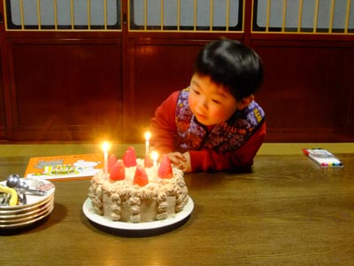 お祝いのケーキは例によってばあちゃんお手製。 生クリームが入荷せず、チョコレートクリームです。 しかも良く見るとローソクが・・・ 仏壇用! 明王ローソク0.2号です。 こんなところにも物資不足の影響が・・・ でもまぁ、何でも良いんです。 本人が大喜びなんですから。 今日のひとこと 外見じゃない、本質が大事。ローソクなんか気にするな。 渡部要一の米のホームページもご覧ください。