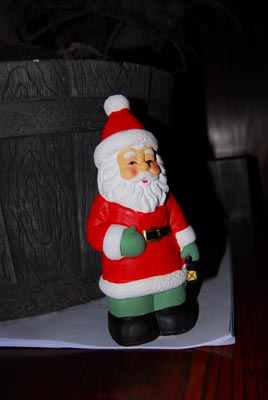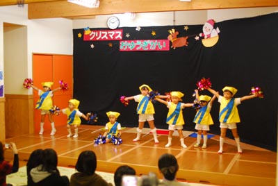 かなり大きくなったので土から鉢に移し替えるのは不可能かと思われましたが、爺・要一が孫のためにと掘り起こしてくれたので、やむを得ず玄関に上げます。 ・・・が、重い。重すぎる。どう考えたって50キロ超。 しかも枝が目に刺さって、めちゃくちゃ持ちにくい・・・。 30分かけて運び込み、飾りつけも無事終了。 この違和感!!!! ツリーというより盆栽です。 「クリスマス盆栽」 良い枝ぶりです。 2歳児も大喜び! 「うわぁ~、人だぁ~!」 ・・・喜び方が違います。 ちなみに彼はこの人を 「クリスマさん」と呼びます。 大体あってます。 今日のひとこと 本物は手あます。来年、どうしよう・・・ 渡部要一の米のホームページもご覧ください。 クリスマスおゆうぎ会がありました。 右から2番目が長男です。 ボンボンで見えません・・・ ←マイペースに、舞台の上で 寝っころがって遊んでます・・・おいおい 見に来た人も「大物だねぇ」・・・冷汗 アンパンマンです。 バイキンマンの中がお母さんです。 なかなかがんばっておりました。 今日のひとこと 手に汗握るクリスマス会。 渡部要一の米のホームページもご覧ください。