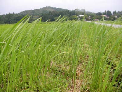 実るほど 頭を垂れる 稲穂かな ・・・我が家のは、まだまだですな。 今日のひとこと PR ご先祖様の御霊(みたま)を迎えて 一緒にお盆をすごします。 まずお墓まで御霊を迎えに行きます。 お迎え用に野菜などを備えた祭壇で ゆっくり休んでもらいます。 盆の間、ご先祖様はここにいます。 子供が異常にエキサイト! 中がどうなっているのか かなり気になるようです。 下の子が先日ねがえりできるようになりました。相当うれしいらしく、仰向けで寝せてもすぐにうつぶせになります。でも、うつぶせになったあと、仰向けに戻れません・・・。1分くらいジタバタしたあと、「っあー!っうあー!」と助けを求めます。 今日のひとこと だいぶ涼しくなりました。 スズムシが1匹ないています。 渡部要一の米のホームページもご覧ください。 知り合いの方から種を分けてもらい、昨年とったものと合わせてまきました。 昨年は15kgまいて5kg収穫というめちゃくちゃ哀しい結果に・・・。 昨年の様子はこちらから 今年の合言葉は 「NO MORE 減収!」 今年の昨年の反省を活かしてがんばります。 今日のひとこと 今のところ順調。 渡部要一の米のホームページもご覧ください。 暑さの盛りですが、 もう腰丈ほどになっています。 風が吹くと波のように大きくうねります。 あぁ、ナ・ツ・ダ・ゼ! 無性にラムネが飲みたくなります。 畦の草の生長も加速するわけです。 ←このように。 こっちもすでに腰丈です。 見事な逆襲・・・ 今日のひとこと あまりにも強いのでしばらく放置 渡部要一の米のホームページもご覧ください。 |