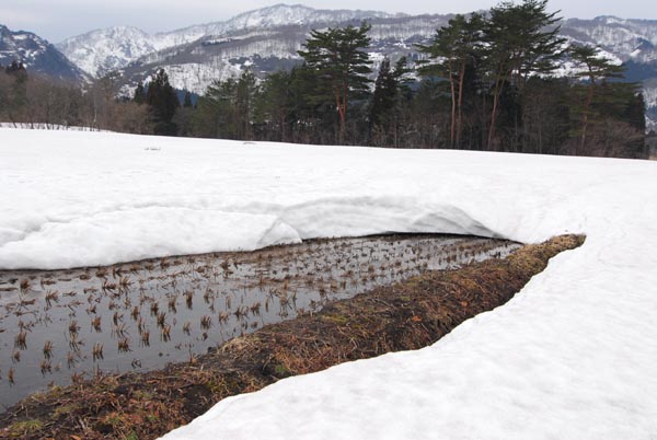 出てきたフキノトウも困惑ぎみ。 「名残雪」と言うんでしょうか。 2010年3月24日17時41分、カウンターが3000人を超えました。 17時台にアクセスが集中しています。 注目すべきは、18時以降のアクセス。 なんと0件!0件!0件!0件!0件! これはつまり3000番ねらい? で、誰が栄えある(?)3000番を踏んだんでしょうか。 ちなみに、キリ番の方には専用ページが表示されます。 1回だけ表示するために、ページを作ってます。 見られた方、楽しんでいただけたでしょうか。 または職場のパソコンで、変なページが出て焦ったでしょうか。 ちなみに、ホームページの方はいろいろありまして、 キリ番ページの設定をしていません。ご了承ください。 今日のひとこと おぬし、名を名乗れ!差し支えなかったら、ぜひ。 渡部要一の米のホームページもご覧ください。 雪がとけて田んぼが見え始めました! 4ヶ月ぶりの再会となります。 雪国では、春になって土が見えると、 ものすごくうれしくなります。 土の匂いなんてしようものなら、テンション急上昇です。 そんなわけで、写真もいつもより少し大きい600×400ピクセルです。 ナローバンドからの発信としては、スペシャルサービスです。 今日のひとこと 春じゃからのう・・・ 渡部要一の米のホームページもご覧ください。 |