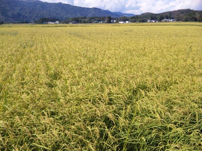 × [PR]上記の広告は3ヶ月以上新規記事投稿のないブログに表示されています。新しい記事を書く事で広告が消えます。 やる気NOTHINGの息子があらぬ方向に 走り去ったあの日から、早10日が過ぎました。 更新が滞ってしまい、失礼いたしました。 山形でも早いところでは稲刈りが始まりましたが、我が家はまだです。 穂は色づいて秋らしくなってきましたが、 モミを剥くと、中身はまだ緑がかった色で、 柔らかくて簡単につぶれてしまいます。 これから2週間かけて熟成していきます。 今日のひとこと 半熟です。 渡部要一の米のホームページもご覧ください。 ・・・大運動会でありますっ! ローカルでしょ。これが良いんですよ。 勝ち負け関係なしで楽しめる雰囲気が何より。 最下位チームが一番盛り上がったりして。 息子も風船拾い競争にエントリー! 一歳児には風船のありがたみがわかりません。 となりの女の子に気をとられています。 やる気NOTHING! ウサンクサイン・ボルト!! 後方からオバマが追い上げます。 誰かやるとは思ってました。やったもん勝ち。 実力以上の注目を得るには、これしかありません。 叶水の運動会は何でもアリです。 山形の大鍋芋煮会に対抗して企画された 一畳サイズの鉄板での大焼肉大会です。 実は以前は一坪焼きだったのですが、 前回の鉄板更新の時、北京オリンピックに伴う金属価格高騰で 半分サイズになってしまいました。でも楽しさは変わりません。 本当に楽しい一日でありました。 今日のひとこと この生産性のない時間にこそ、本当の豊かさがあふれている 渡部要一の米のホームページもご覧ください。 このくらい色づくと、田んぼらしいですね。 今のところ、秋は穏やかな天候のようです。 気温・日照とも好調を維持しており、 夏場の不調を回復して元気に育っています。 雑草も元気に回復してますけど・・・ 今日のひとこと 稲も稗も同じ草。 渡部要一の米のホームページもご覧ください。